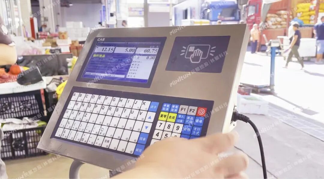 同时在结算方面也实现了智慧化,在各个商户前都配有一台批发溯源秤和商户公示屏,其中批发溯源秤不仅仅是称重,买卖双方都是在这台秤上进行电子化结算。